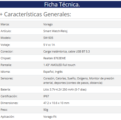 • SMART WATCH VORAGO SW-505 BLUETOOTH NEGRO 2 EXT